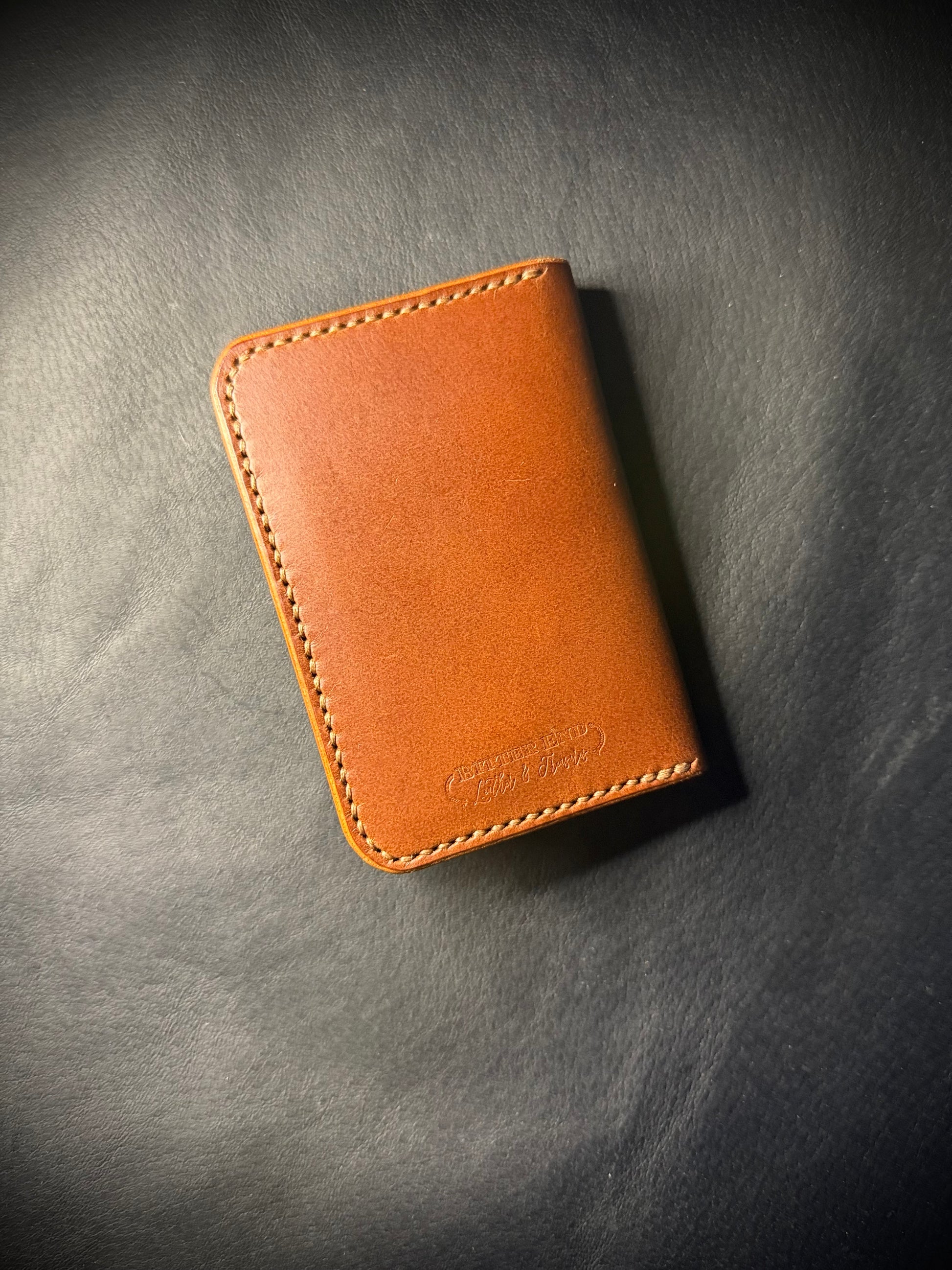 Crafted from Buttero Italian vegetable-tanned leather and hand-stitched with Ritza Tiger Thread, this wallet features a vertical layout with four card slots and two internal pockets, offering efficient storage in a slim, pocket-friendly profile. Designed to age gracefully and soften with use, it’s made to serve well beyond its time in The Brig.